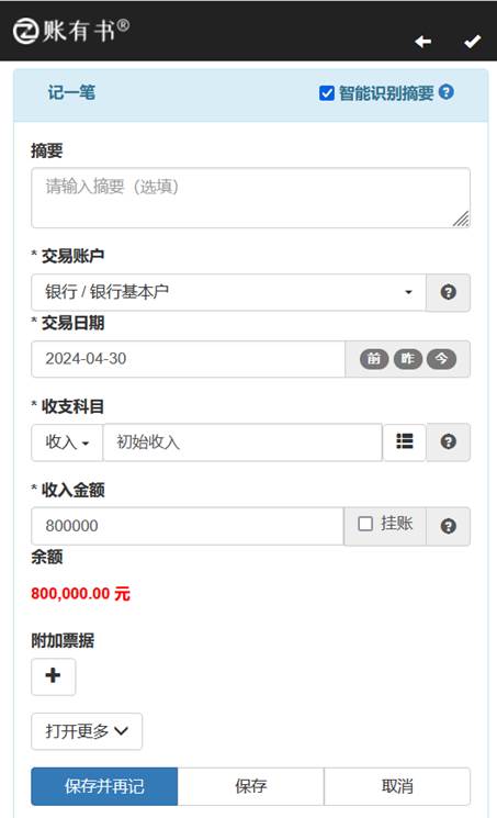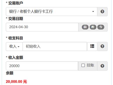 接下來為“老板個人銀行卡工行”賬戶錄入初始余額。