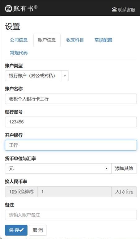 賬有書平臺默認創建一個“銀行基本戶”賬戶,