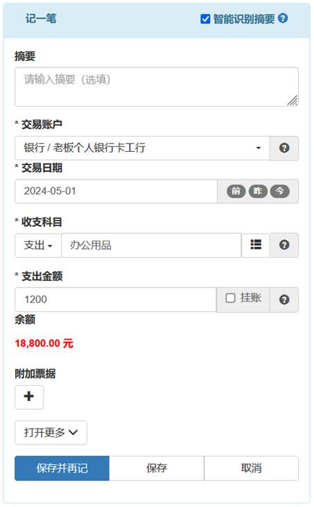 進入“日記賬”,點“記一筆”,參考下圖錄入相應信息即可。
